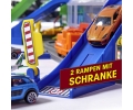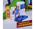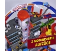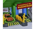 Garaż Majorette wyposażony w 35 parkingów i magazynów, 7 poziomów do zabawy wraz z parkingami na każdym z nich, 2 elektryczne windy, myjka, stacja benzynowa, wyrzutnia policji, 6 różnych dźwięków i świateł, elektryczny pociąg, 6 pojazdów w zestawie.